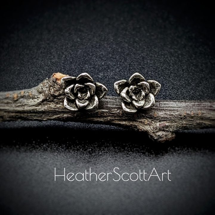 These solid sterling silver star flower stud earrings are handmade from cape blanco succulents from Heather’s garden. She picks the prettiest succulents throughout the year to cast and is fascinated by the different shapes that cape blanco succulents take depending on which season it is.