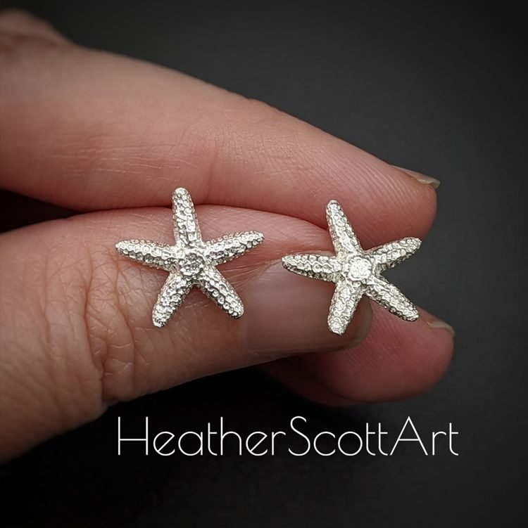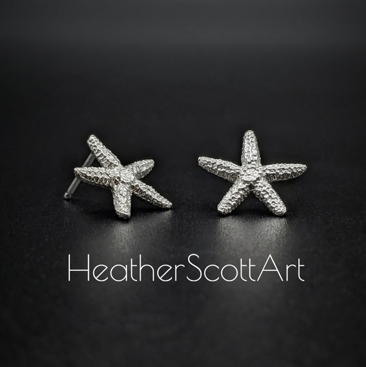These starfish earrings are solid sterling silver and were created on the jewelry bench of Heather Scott. They are ready for everyday wear, and are the perfect way for someone to show off their love of the ocean!