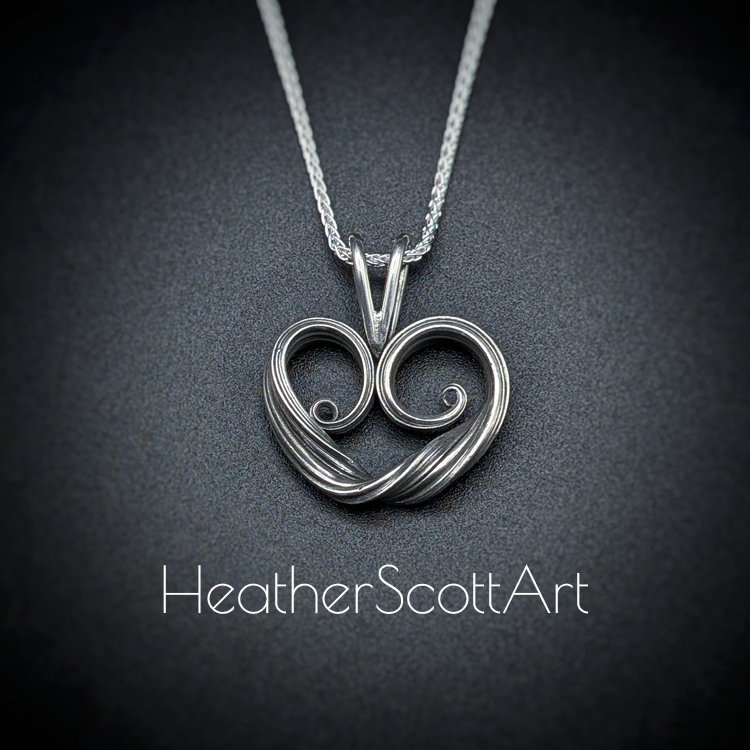 This necklace is handcrafted by Heather Scott using the Japanese technique of mitsuro. Known for its ability to produce fluid, organic textures, this process gives this pendant its distinctive flowing linear texture and timeless aesthetic. Its organic design makes it both unique and heartfelt, capturing the beauty of love in its purest form. Read about the mitsuro process in the about page.