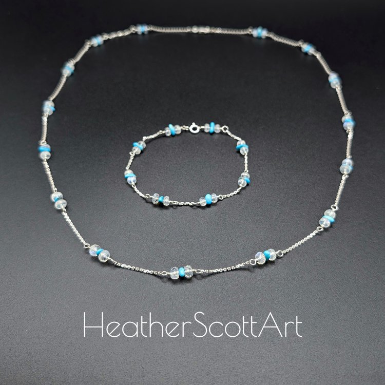 Materials: Sterling Silver, Turquoise, Rainbow Moonstones