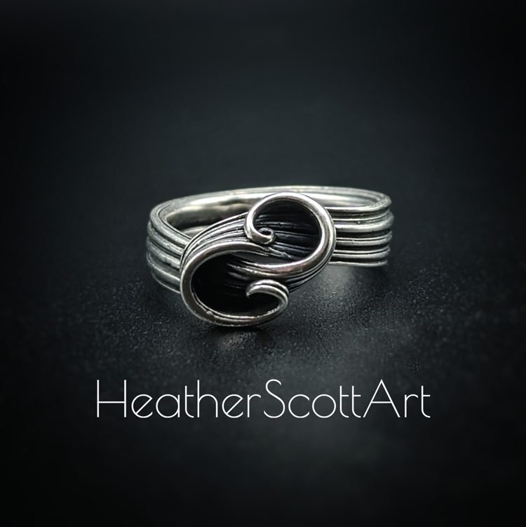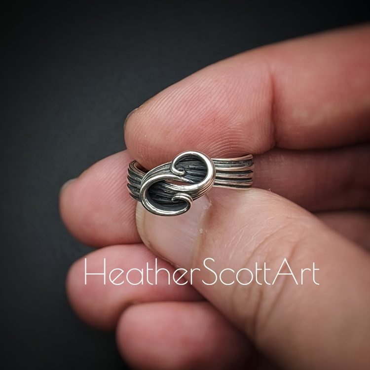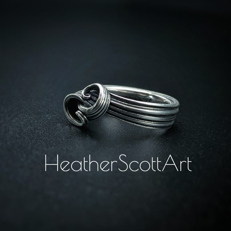 This ring is handcrafted by Heather Scott using the Japanese technique of mitsuro. Known for its ability to produce fluid, organic textures, this process gives the ring its distinctive flowing linear texture and timeless aesthetic. Its minimalist yet striking design makes it perfect for any occasion, whether worn alone or with other favorites.