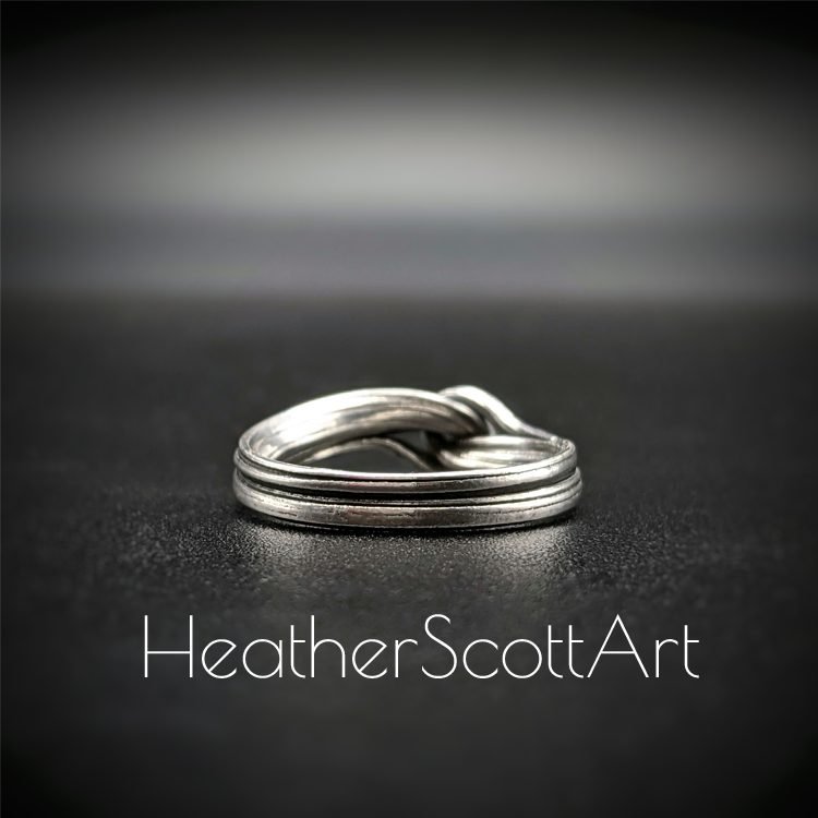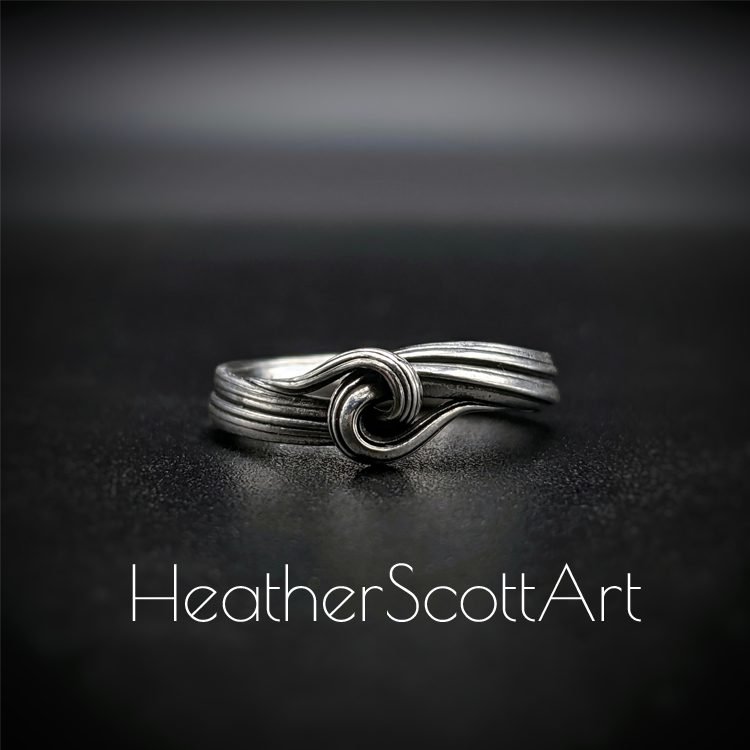 Feel the quiet weight of connection…cool metal warming to your skin, the soft curve of the knot catching the light as you move. Grounding, like a deep breath in the middle of a busy day. The flowing lines echo the rhythm of nature, the curve of a wave or the twist of a vine, reminding you that strength and grace often live in the same place. Over time, it becomes more than a ring; it becomes part of your story, carrying traces of every moment you’ve worn it.