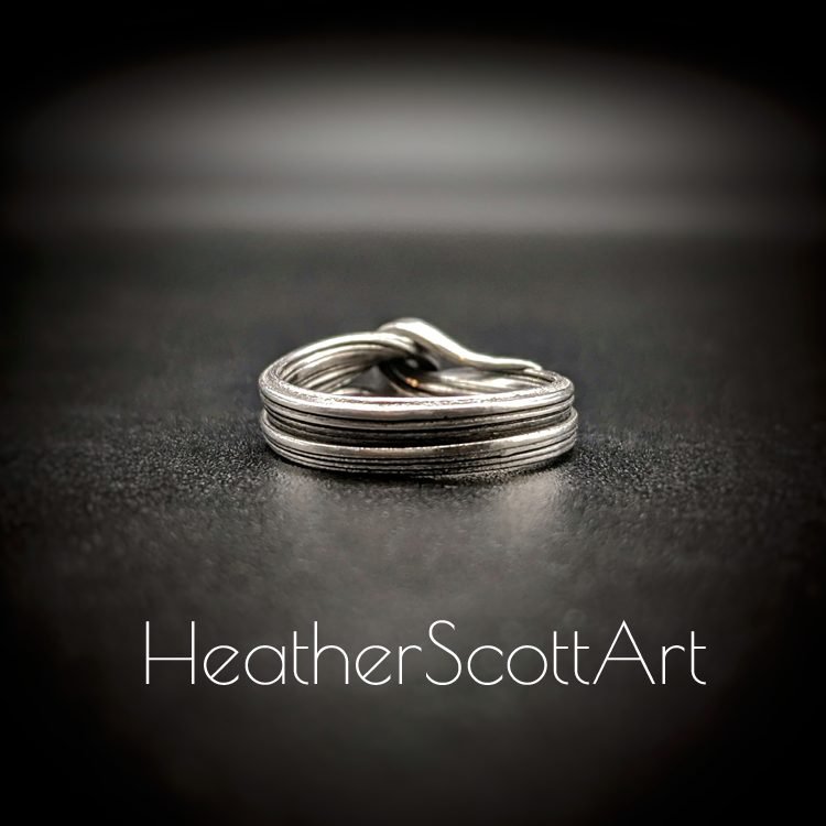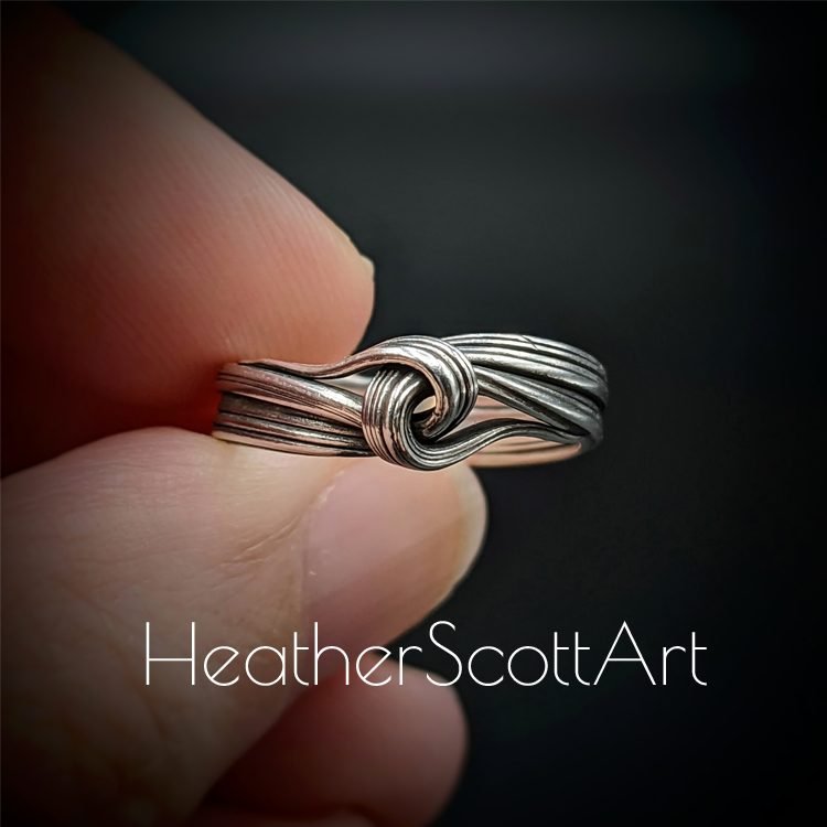 Feel the quiet weight of connection…cool metal warming to your skin, the soft curve of the knot catching the light as you move. Grounding, like a deep breath in the middle of a busy day. The flowing lines echo the rhythm of nature, the curve of a wave or the twist of a vine, reminding you that strength and grace often live in the same place. Over time, it becomes more than a ring; it becomes part of your story, carrying traces of every moment you’ve worn it.