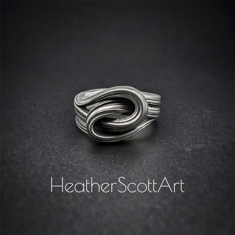 Feel the quiet weight of connection…cool metal warming to your skin, the soft curve of the knot catching the light as you move. Grounding, like a deep breath in the middle of a busy day. The flowing lines echo the rhythm of nature, the curve of a wave or the twist of a vine, reminding you that strength and grace often live in the same place. Over time, it becomes more than a ring; it becomes part of your story, carrying traces of every moment you’ve worn it.