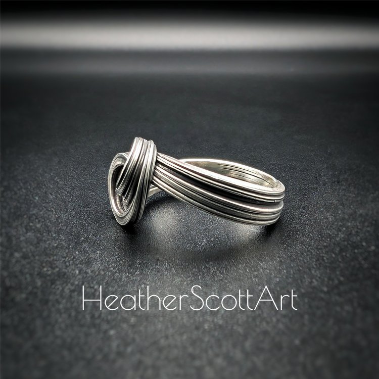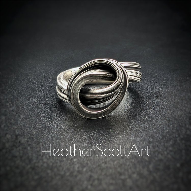 Feel the quiet weight of connection…cool metal warming to your skin, the soft curve of the knot catching the light as you move. Grounding, like a deep breath in the middle of a busy day. The flowing lines echo the rhythm of nature, the curve of a wave or the twist of a vine, reminding you that strength and grace often live in the same place. Over time, it becomes more than a ring; it becomes part of your story, carrying traces of every moment you’ve worn it.