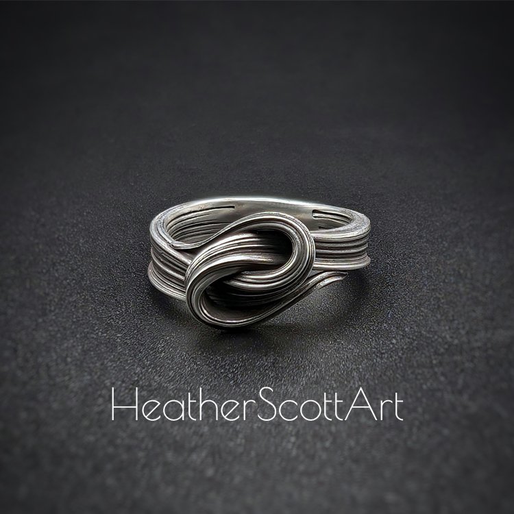 Feel the quiet weight of connection…cool metal warming to your skin, the soft curve of the knot catching the light as you move. Grounding, like a deep breath in the middle of a busy day. The flowing lines echo the rhythm of nature, the curve of a wave or the twist of a vine, reminding you that strength and grace often live in the same place. Over time, it becomes more than a ring; it becomes part of your story, carrying traces of every moment you’ve worn it.