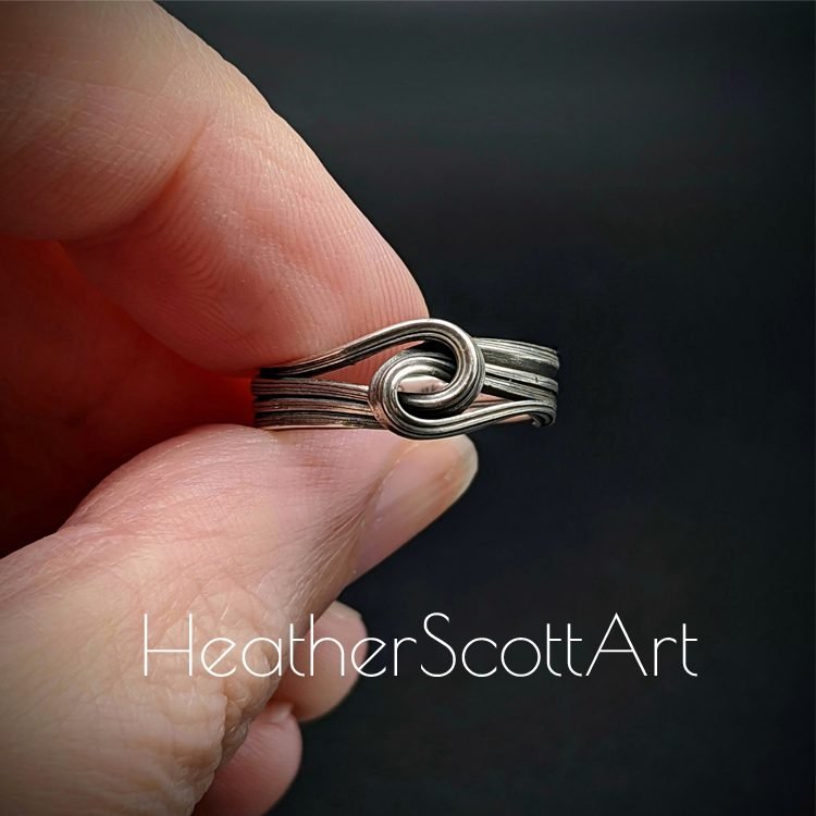 Feel the quiet weight of connection…cool metal warming to your skin, the soft curve of the knot catching the light as you move. Grounding, like a deep breath in the middle of a busy day. The flowing lines echo the rhythm of nature, the curve of a wave or the twist of a vine, reminding you that strength and grace often live in the same place. Over time, it becomes more than a ring; it becomes part of your story, carrying traces of every moment you’ve worn it.