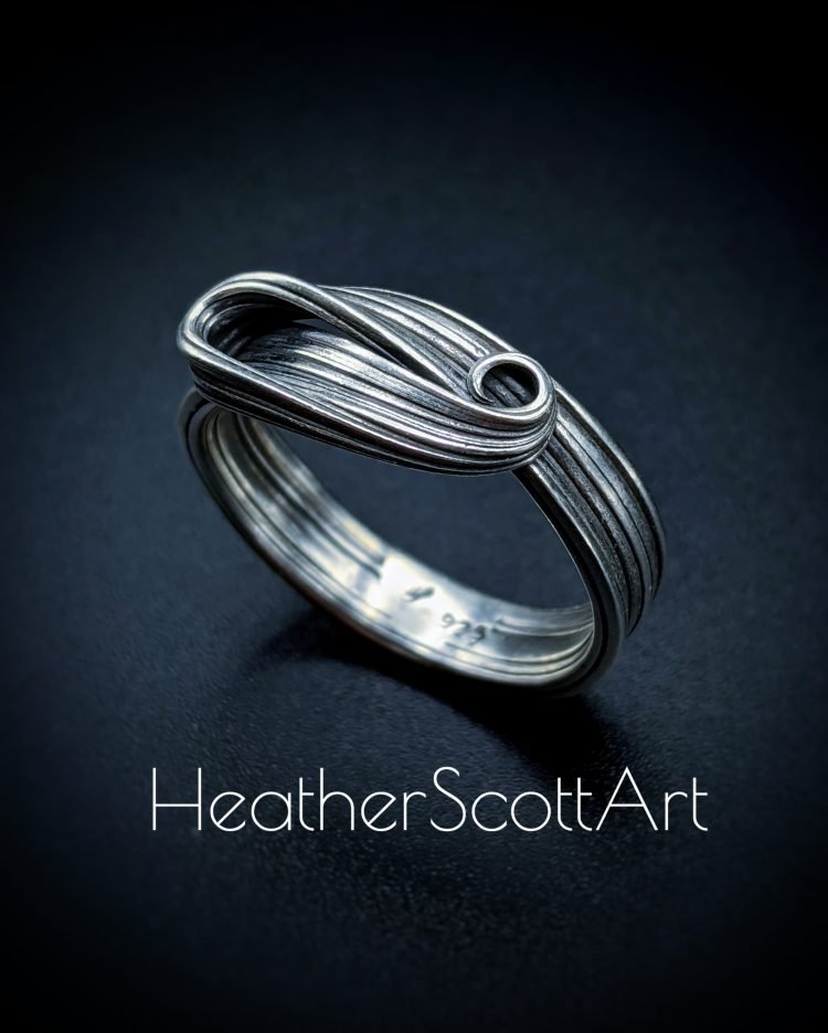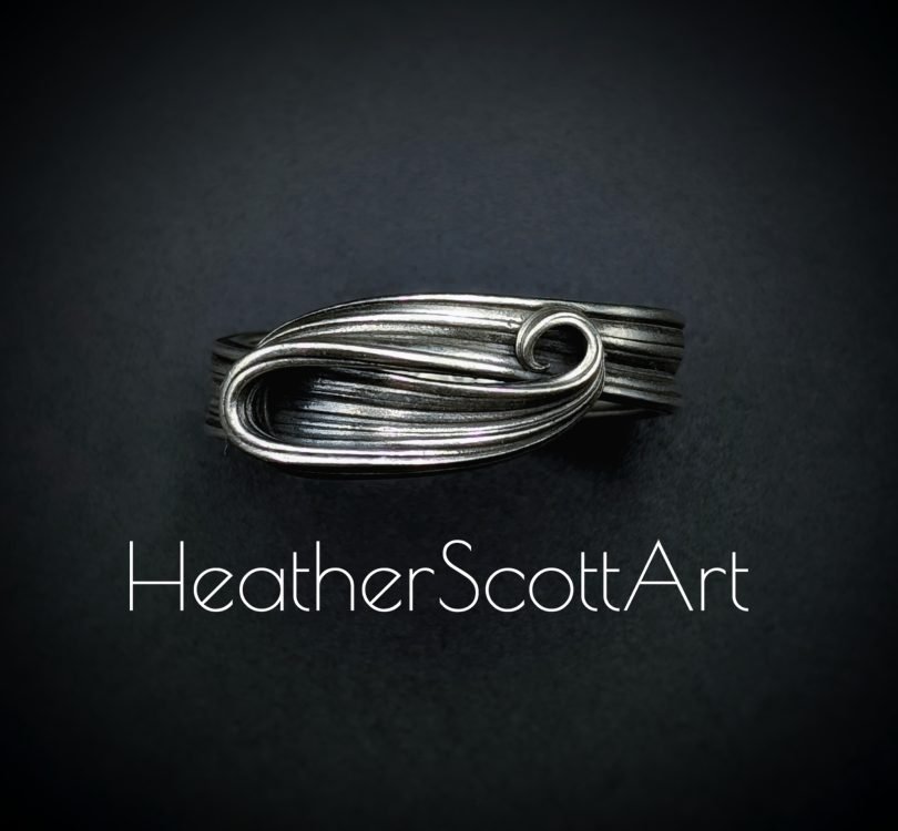This ring is handcrafted by Heather Scott using the Japanese technique of mitsuro. Known for its ability to produce fluid, organic textures, this process gives the ring its distinctive flowing linear texture and timeless aesthetic. Its minimalist yet striking design makes it perfect for any occasion, whether worn alone or with other favorites.