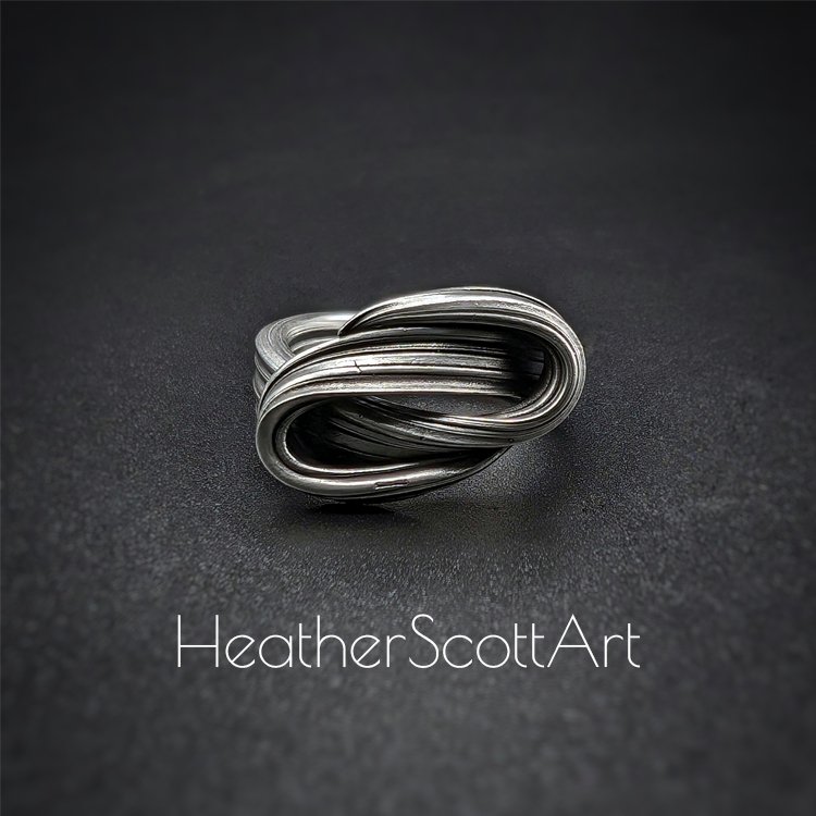 Feel the quiet weight of connection…cool metal warming to your skin, the soft curve of the knot catching the light as you move. Grounding, like a deep breath in the middle of a busy day. The flowing lines echo the rhythm of nature, the curve of a wave or the twist of a vine, reminding you that strength and grace often live in the same place. Over time, it becomes more than a ring; it becomes part of your story, carrying traces of every moment you’ve worn it.
